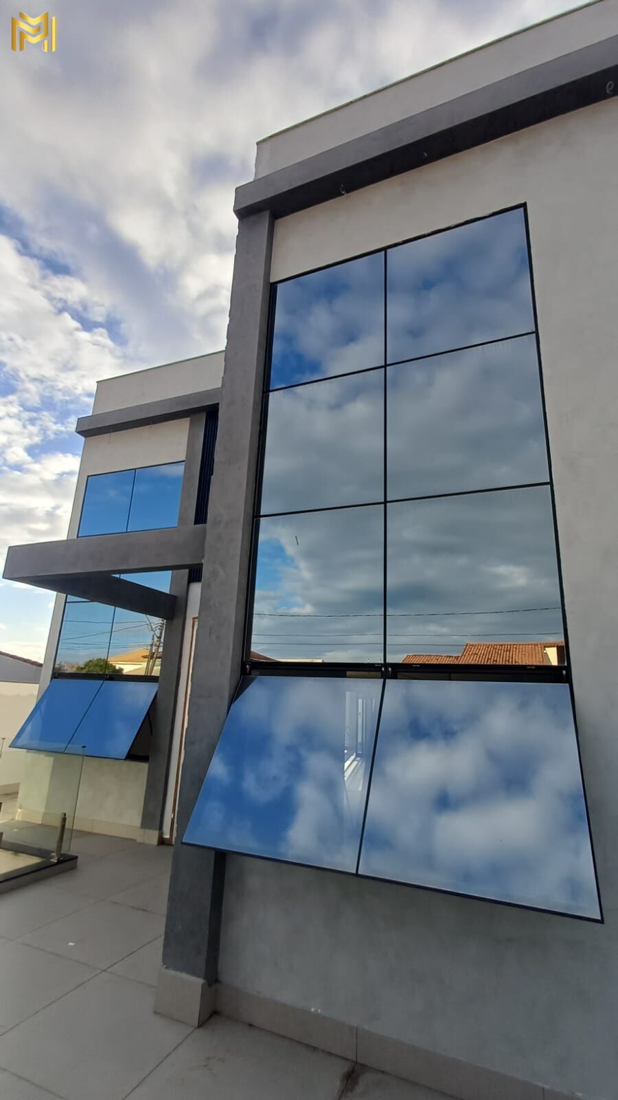 - Sala imponente com pé-direito de 5,50m e fachada envidraçada em vidros reflecta laminado, que unem elegância e luminosidade natural.